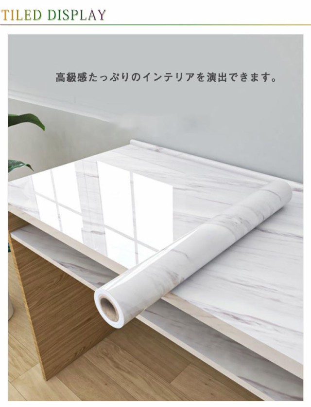 | 大理石シートは裏面がシールになってるので、好きな場所に貼るだけでOK。 高級感たっぷりのインテリアを演出できます。 最近、大理石シートを使った家具は高いけど、今ある家具を高級感のある大理石調に変身させるのに大活躍するアイテムです。 防水性防汚性にも優れ、表面に汚れがつきにくい防汚加工付き、お手入れは濡れタオルで拭き取るだけです。 キッチン、台所やレンジ周りの火気が心配される状況でも、安心してご使用いただけます。 水に強いからお風呂にもおすすめ、初めての方や女性でも簡単に貼れる! 壁紙の上にはもちろん、家具や床にもご使用いただけるので、お気軽にお部屋の模様替えを楽しめます! | |