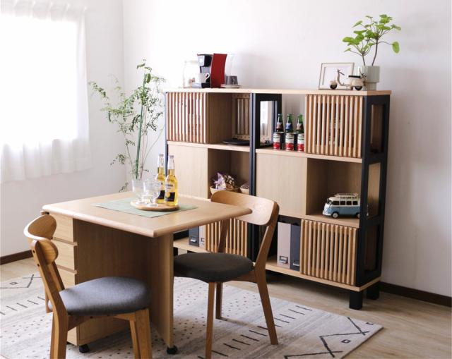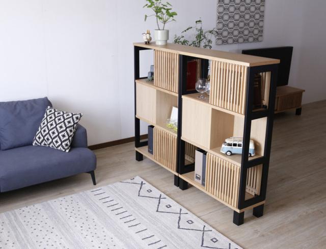 正面・背面どちら側も同じようにお使いいただける仕様なので、間仕切り収納としてもぴったりです。空間を間仕切って、メリハリのあるお部屋に◎