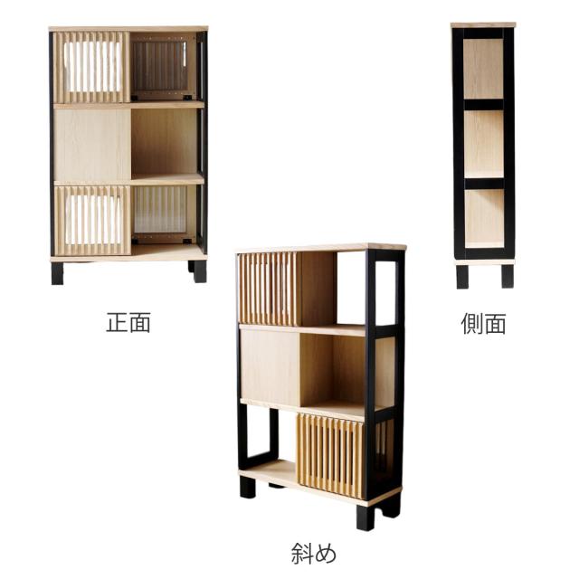 シェルフ 幅80cm 両面仕様 間仕切り 引き戸 完成品 ( 棚 ラック A4対応 収納 オープンシェルフ 飾り棚 リビングボード 本棚 両面 ルーバー 奥行スリム 省スペース )