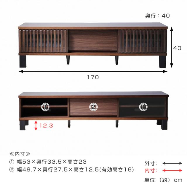 テレビ台 幅170cm 引き戸 70型対応 フルスライドレール 完成品 ( テレビボード ローボード 可動棚 ラック 棚 収納 引き出し リビングボード ルーバー 省スペース 背面化粧 ウォールナット ナチュラル )