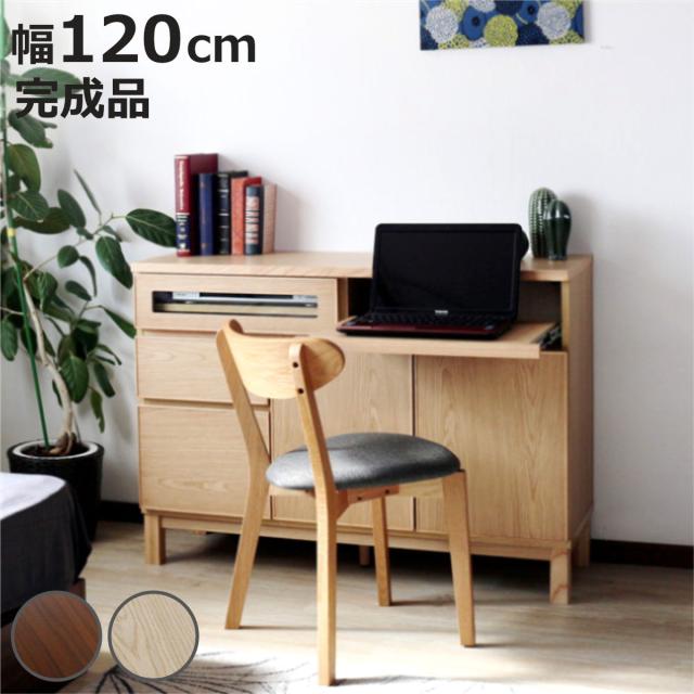 サイドボード 幅120cm テーブル付 背面化粧 フルスライドレール 完成品 ( 棚 ラック 引き出し スライドテーブル 省スペース テレビ台 作業台 家事机 ビューロー デスク ウォールナット ナチュラル )