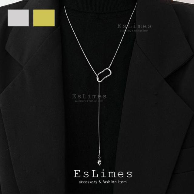 ロングネックレス レディース シンプル ラリエット ボール 不規則 カジュアル シルバー ゴールド ポイント利用