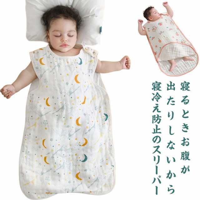 商品説明 寝るときお腹が出たりしないから寝冷え防止のスリーパー吸湿性、保温性に優れた6重/4重ガーゼを採用。肌触りの良く、敏感肌用も安心。夏場はしっかりと汗を吸収し、冬場は暖かさを逃さず、一年を通じて使えます。しっかり体温調節もしてくれるので夜泣き防止にも大活躍!お母さんも安心して眠ることができます。スリーパー:両脇・肩・を外してスリーパーを広げた上に赤ちゃんを寝かせれば、簡単におむつ替えや肌着の着替えができます。赤ちゃんの肩、おなかまわり、足元まですっぽりと寒気から守ってくれます。 サイズS M Lサイズについての説明S 着丈55肩幅26おすすめ身長60-80cm おすすめ年齢0-1.5歳