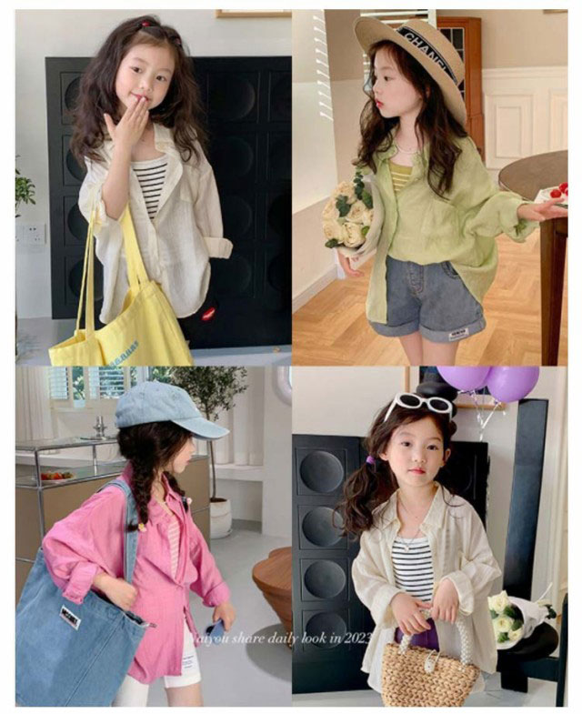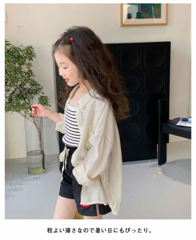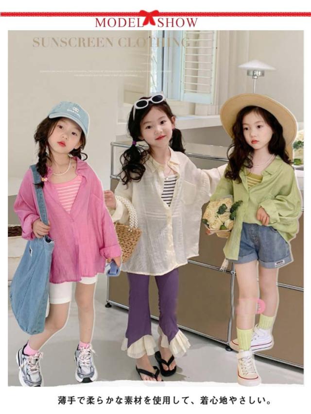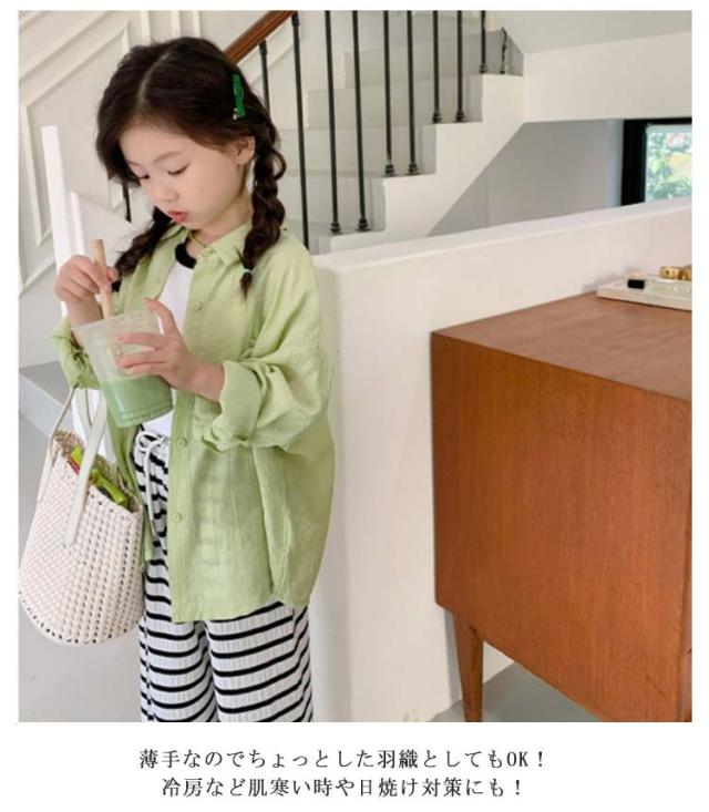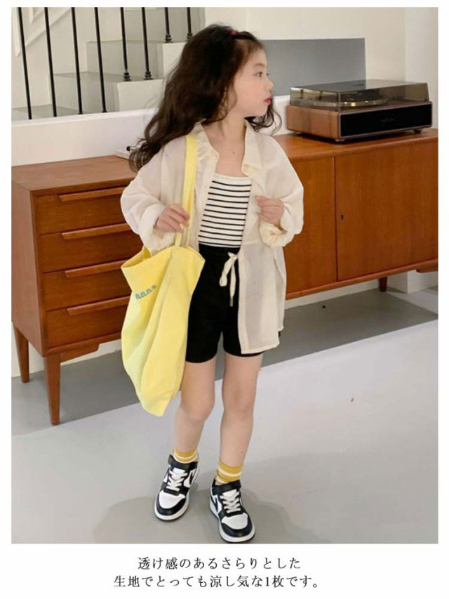 シアーシャツ キッズ 子供服 長袖 女の子 薄手 夏 透け感 アウター 羽織り 子供服 夏服 子ども服 ベビー服 女児 トップス 無地 カーディガン UVカット 紫外線防止 冷房対策 虫除け対策 シャツ 90 100 110 120 130 140 150cm