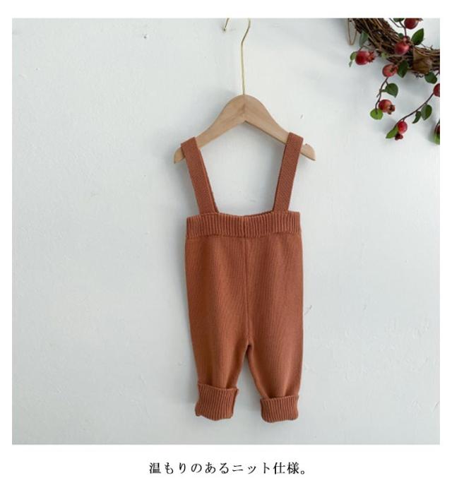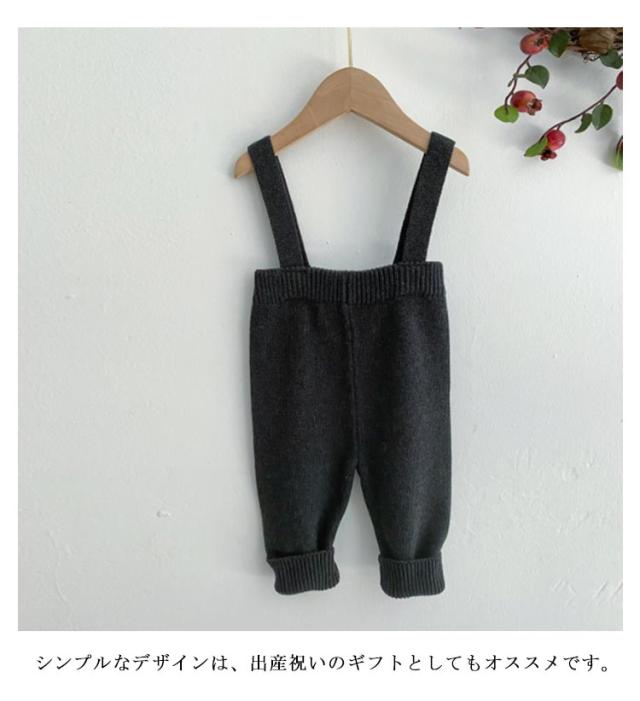 | かわいいニットサロペット。 男女共に着用いただけるユニセックスデザイン。 シンプルなデザインなのでどんなコーディネートにも合います。 温もりのあるニット仕様。 シンプルなデザインは、出産祝いのギフトとしてもオススメです。 | |