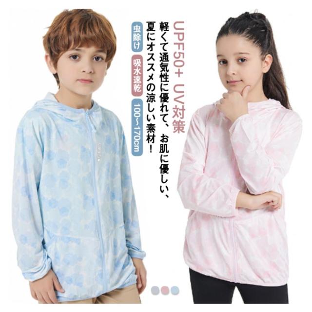 uvカット パーカー キッズ 女の子 男の子 接触冷感 100?170 UVパーカー 羽織り 虫除け 子供 UPF50+ ひんやり ジップアップ ラッシュガード 紫外線対策 こども 子ども服 長袖 UVカット 日焼け止め 軽量 春 夏 秋 薄手 吸水速乾 涼しい おしゃれ 送料無料