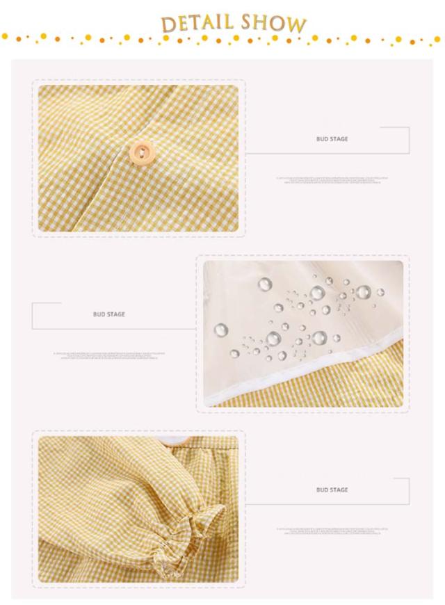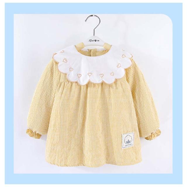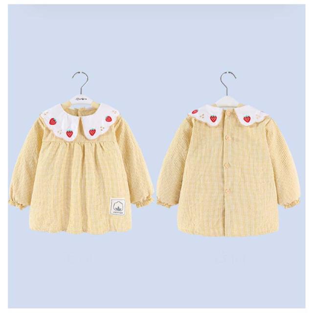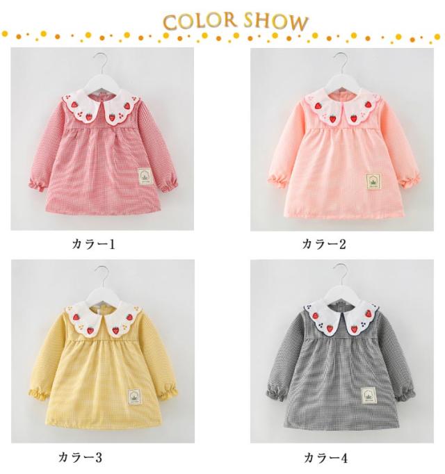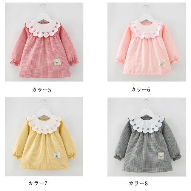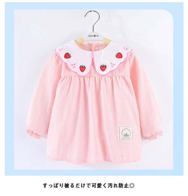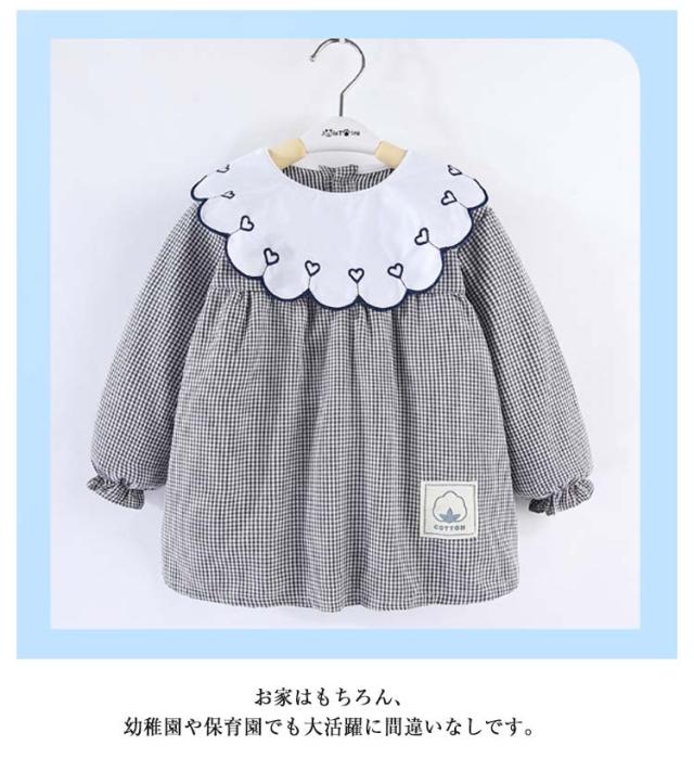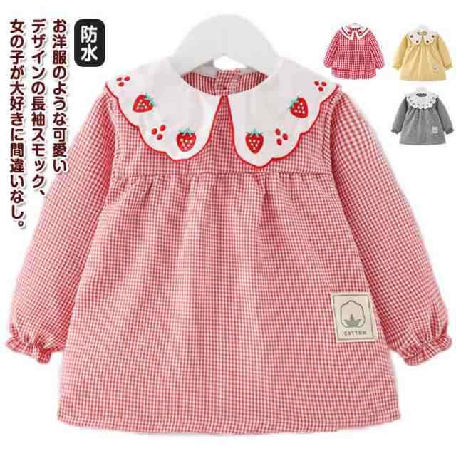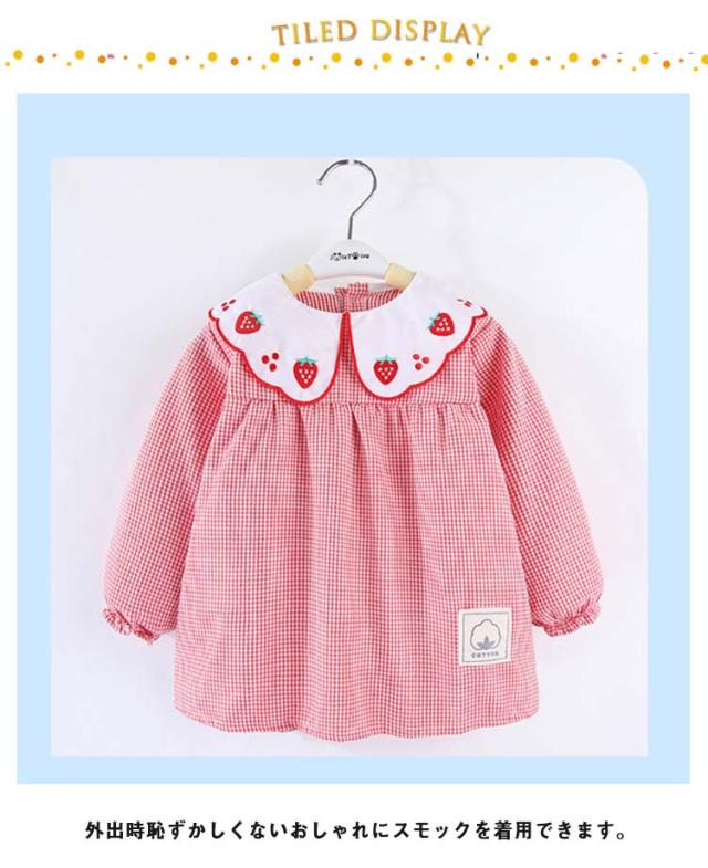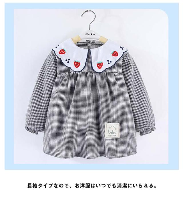 長袖 スモック 防水 キッズ 女児 綿 コットン スモックブラウス 袖付きエプロン 女の子 ベビースモック 可愛い チェック柄 汚れ防止 絵画 工作用 外遊び お食事 エプロン ワンピース