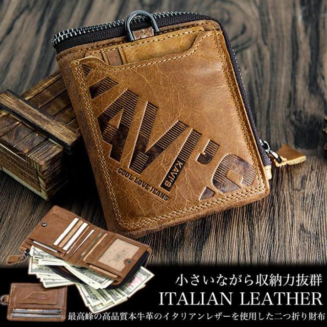 財布 メンズ 本革 二つ折り財布 イタリアンレザー 牛革 二つ折財布 小銭入れ