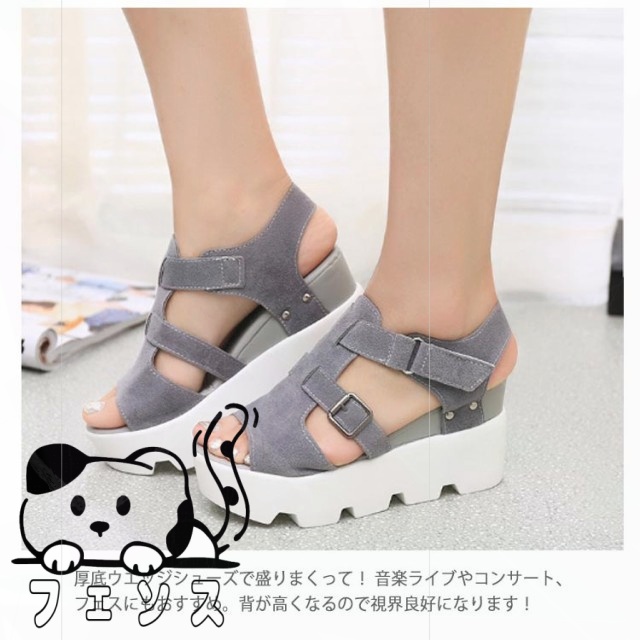 | パーティーやリゾートへの旅行にも:歩きやすいヒール靴は夜遊びにもオススメです! 厚底ウエッジシューズで盛りまくって! 音楽ライブやコンサート、フェスにもおすすめ。背が高くなるので視界良好になります! ■軽量なので、足も疲れにくく持ち運びも楽です。 ♪~ソフトで柔軟なインソール、歩行時の足はより多くのサポートを与えることができます。 ♪~靴底には滑り止めも付いており、何よりも屈曲性のあるスマートウェッジソールなので、快適に歩行が出来ます。 | |