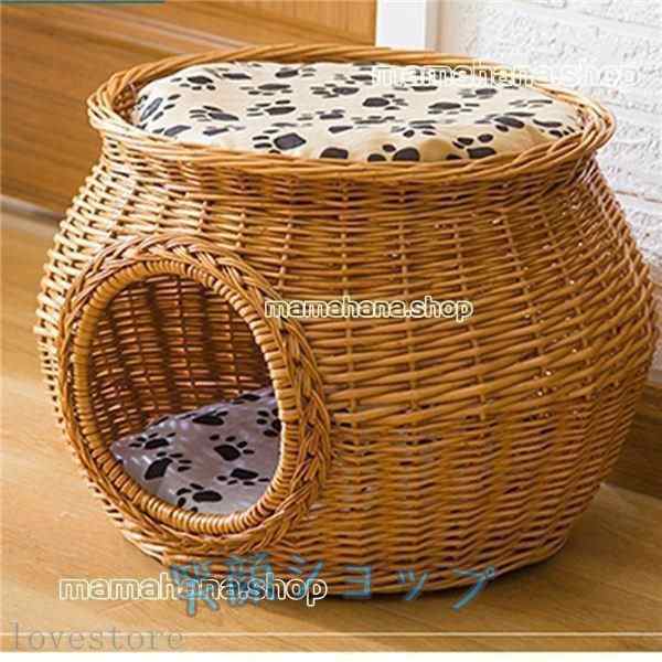 ラタン 猫ハウス ドーム型 ペットベッド 藤編み ラタンキャットハウス 二階 猫ちぐら ペットハウス キャットケージ 猫かごネスト 子犬