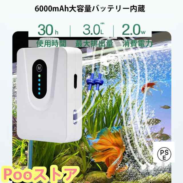 ソーラーエアポンプ 2.5L/min 水槽用エアポンプ 静音設計5w 6000mAHの大容量電池 省電力動作 防水 屋外 エアーポンプの風量調節可能