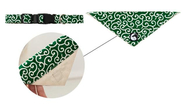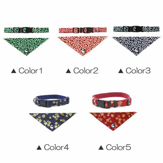 花柄模様が可愛い スカーフ+首輪 2点セット 唐草模様 バンダナ 唐草 犬 猫 ペット用品 和柄 記念写真 ペットスカーフ