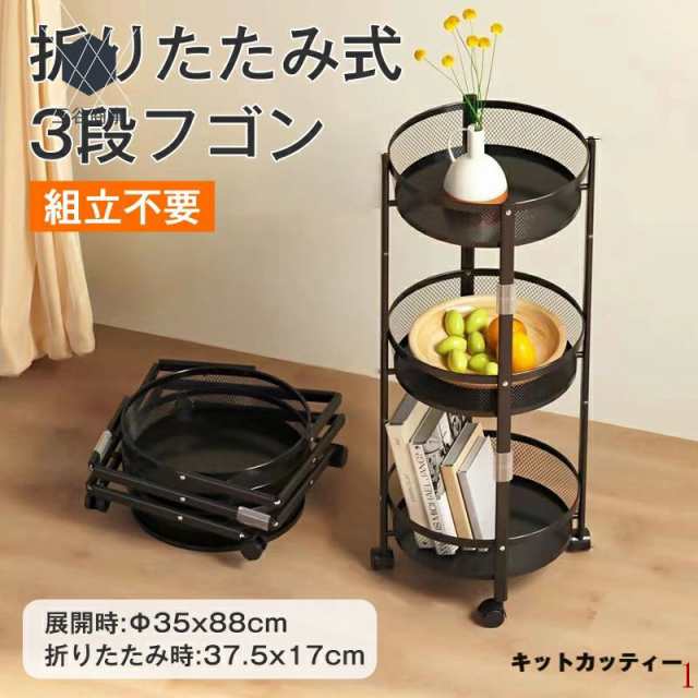 三段ワゴン 折りたたみ キャスター付き おしゃれ ラック 可動式ワゴン 丸型 完成品 キャスター キッチンワゴン 収納 スリム 北欧 キッチン カート ガーデニング おしゃれ 雑貨 洗面所 アウトドアワゴン 片付け コンパクト 工具不要 簡単