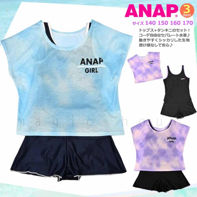 水着 子供 女の子 ガールズ スイムウェア スクール水着 ANAP ブランド タンキニ ショートパンツ T付き 3点 セット ジュニア 子ども お洒落 140cm 150cm 160cm