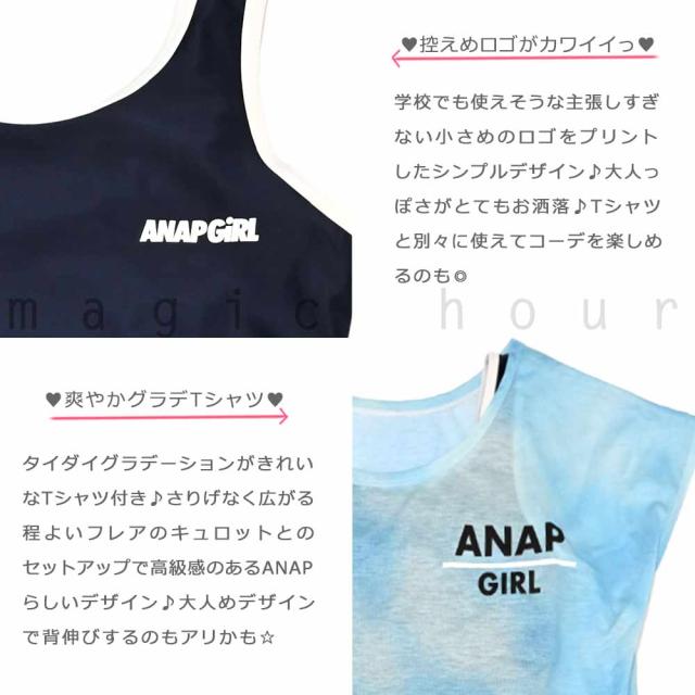 ◆ ANAP アナップ キッズ ジュニア ガールズ タンキニ 水着 Tシャツ 3点 セット 無地 ワンポイント スイムウェア◆