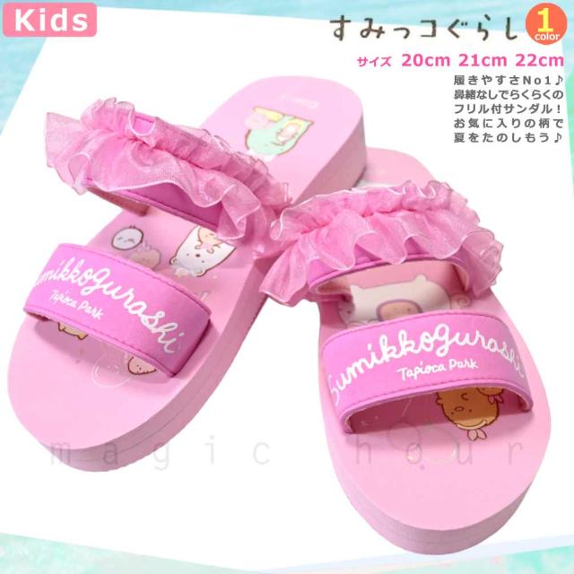 子供 ビーチサンダル キッズ ジュニア ガールズ すみっコぐらし ビーサン シャワサン 定番 おしゃれ かわいい 海水浴 こども 女の子 プール 水泳 ピンク フリル