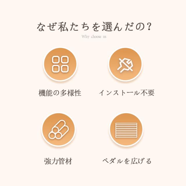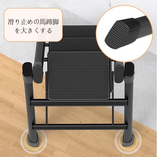 シンプルだけど便利な機能が満載1.丸い角手を痛めません2.高品質のハードウェア耐久性のある3.キズに強いフレーム4.マルチビーム補強5.足を置きやすい大きめステップ6.床への傷を防止する脚カバ