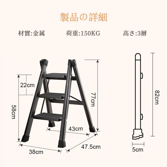 品名:折りたたみ階段素材:鉄製カラー:ホワイト、ブラック、レッドサイズ:写真が示すように重量:約5kg耐荷重:約150kg