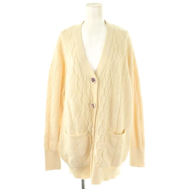 【中古】ザラ ZARA ケーブル編み カーディガン ニット Vネック M アイボリー /AT ■OS レディース
