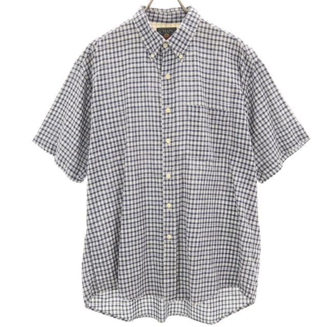CHAPS RALPH LAUREN チャップスラルフローレン リネンブレンド チェック柄 半袖 ボタンダウンシャツ LL ネイビー メンズ