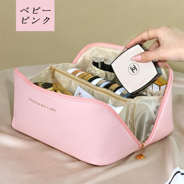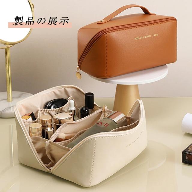 【マルチ機能デザイン】この化粧ポーチには複数の仕切りとポケットがあり、様々な化粧品やスキンケア製品を便利に収納・整理できます。化粧品を整然と整頓することができます。