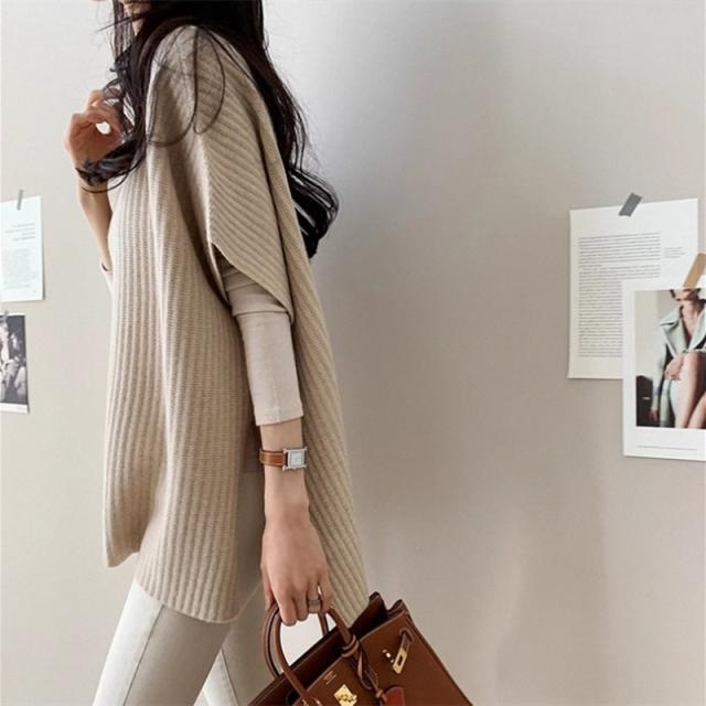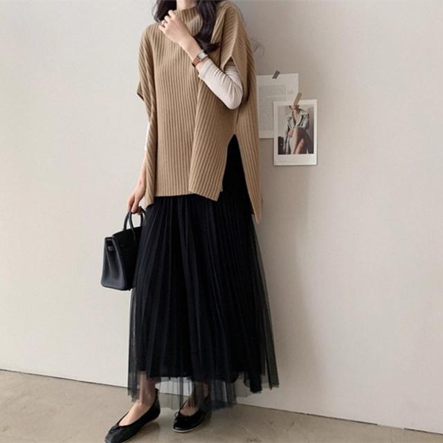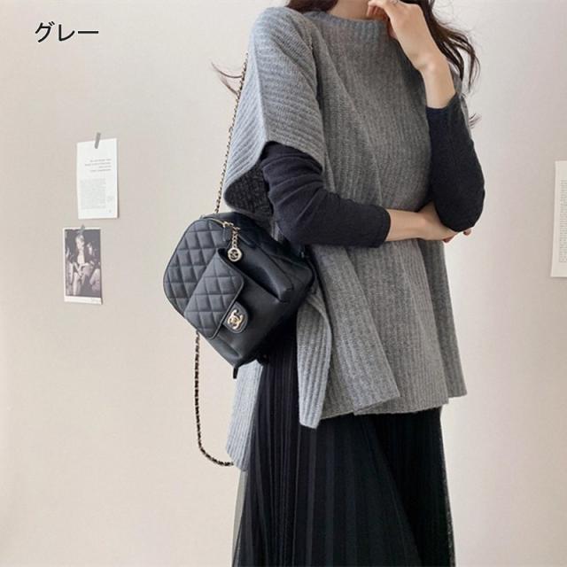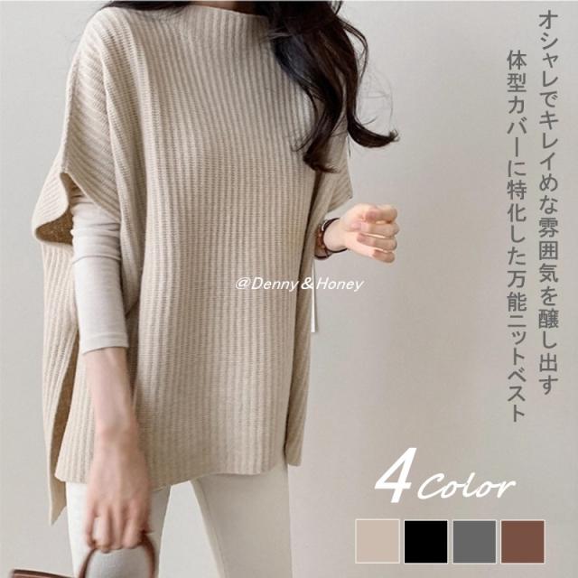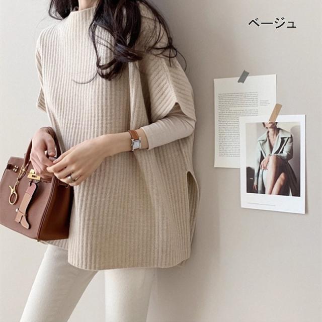 送料無料 レディース トップス 体型カバー オシャレ キレイめ ベスト セーター ニットチョッキ レディース 秋 重ね着 プルオーバー 春 秋 冬 サイドスリット ドルマンスリーブ 大人 オフィス カジュアル リブニット シンプル オシャレ アウター ハイネック 通勤 通学