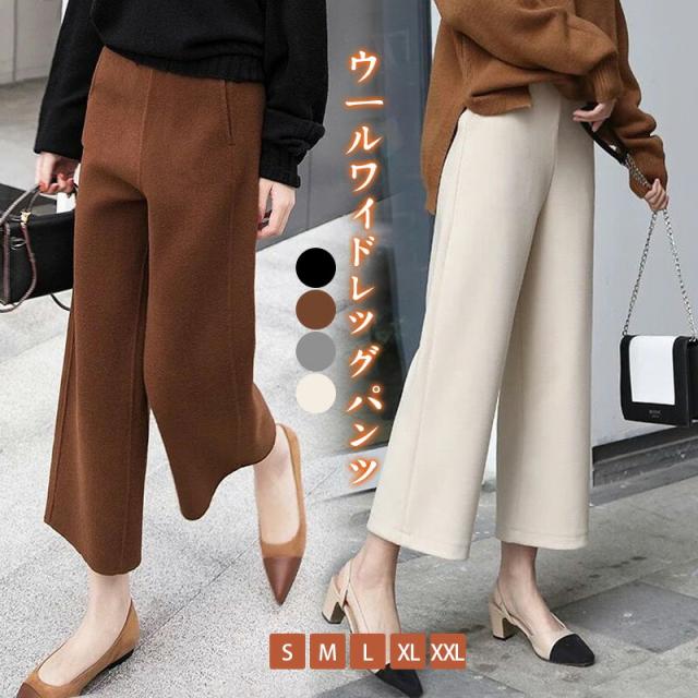 ストレート ハイウエスト ウエストゴム クロップドパンツ ガウチョパンツ ワイドパンツ レディース 秋冬 パンツ 七分丈 シンプル 大きいサイズ 無地 カジュアル きれいめ おしゃれ あったか オフィス OL フォーマル 通勤