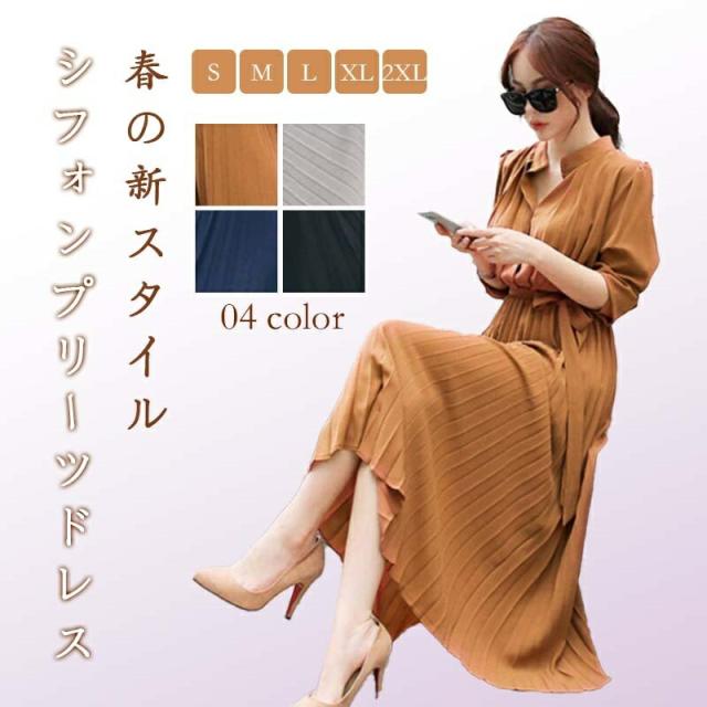 シフォンワンピース きれいめワンピース ロング ゆったり ワンピース レディース ロングワンピース レディース きれいめ カジュアル 長袖 シャツワンピース オフィスカジュアル パーティードレス 秋 冬 春 夏 大人 上品 フォーマル フレア プリーツ マタニティ