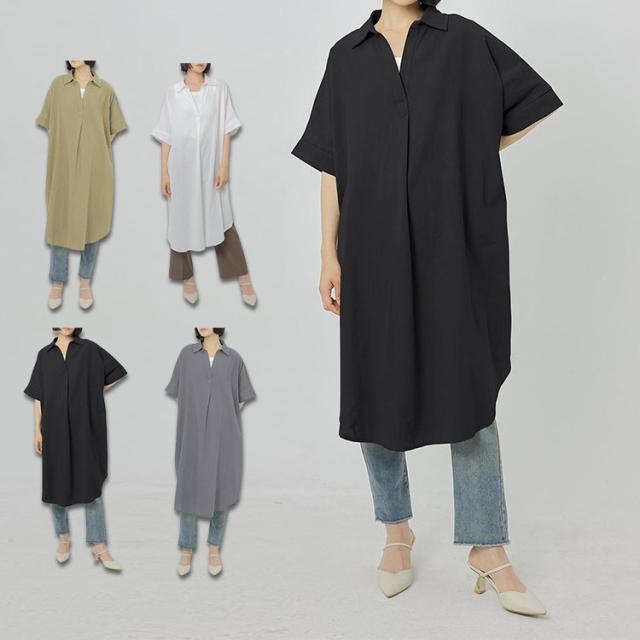 シャツワンピース レディース 半袖 夏 ワンピース ワンピ シャツワンピ ロングシャツレディースファッション シャツワンピース