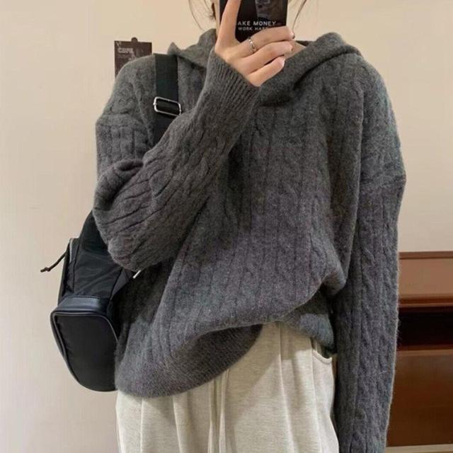 ニットパーカー レディース 秋 冬 プルオーバー フード付き セーター ニット ニットセーター 無地 厚手 パーカー 防寒 暖かい カジュアル おしゃれ