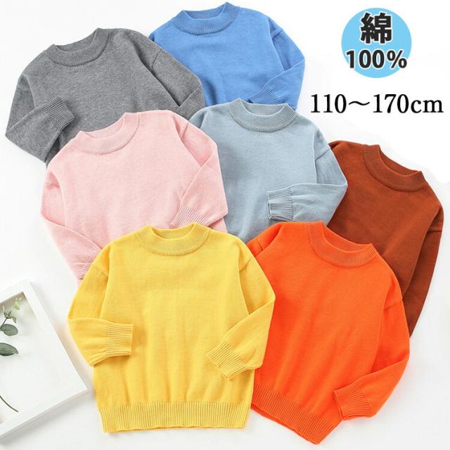 セーター ニットセーター キッズ ニット 綿100% コットン こども 子供 女の子 男の子 クルーネック 無地