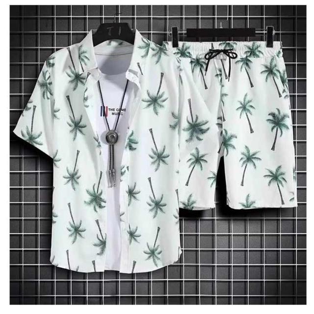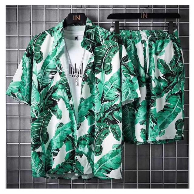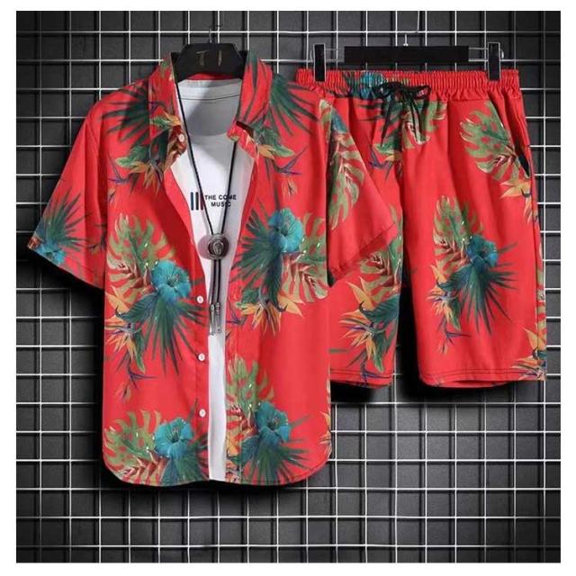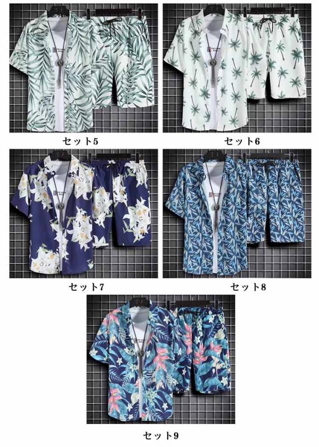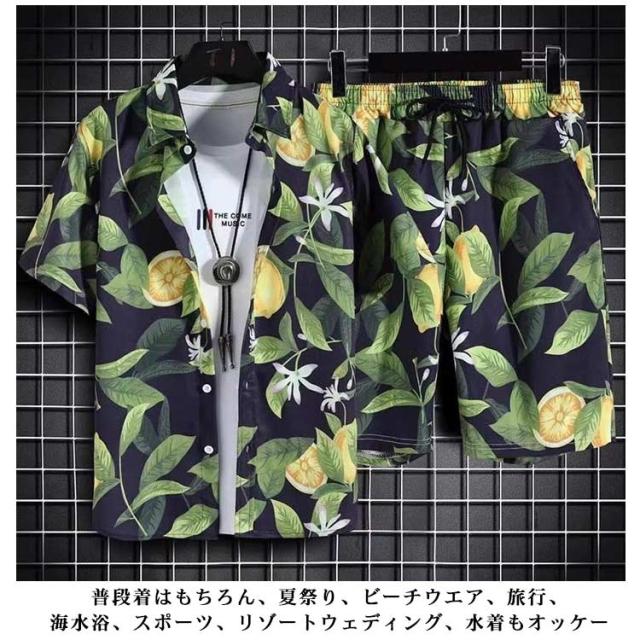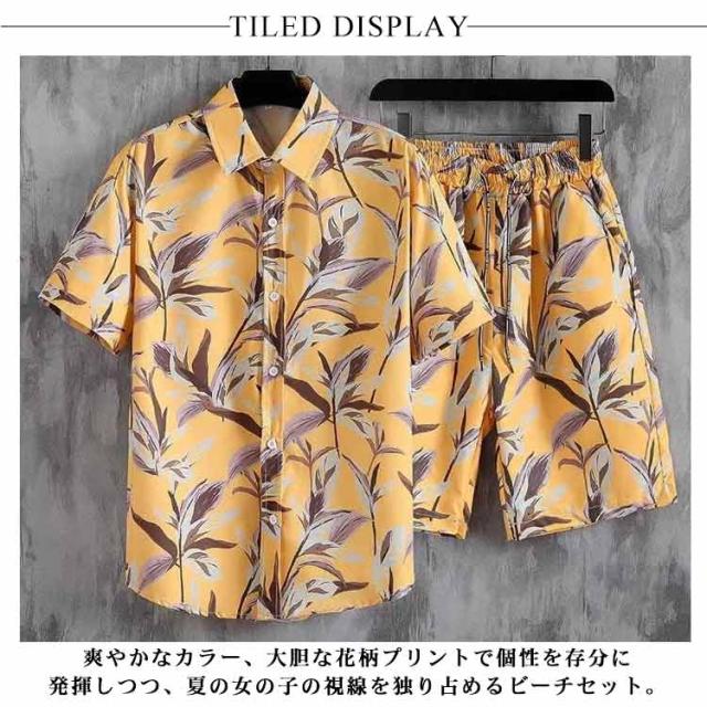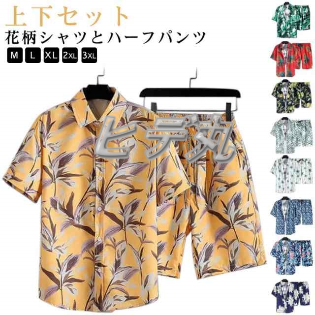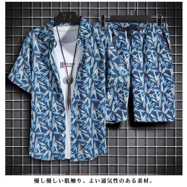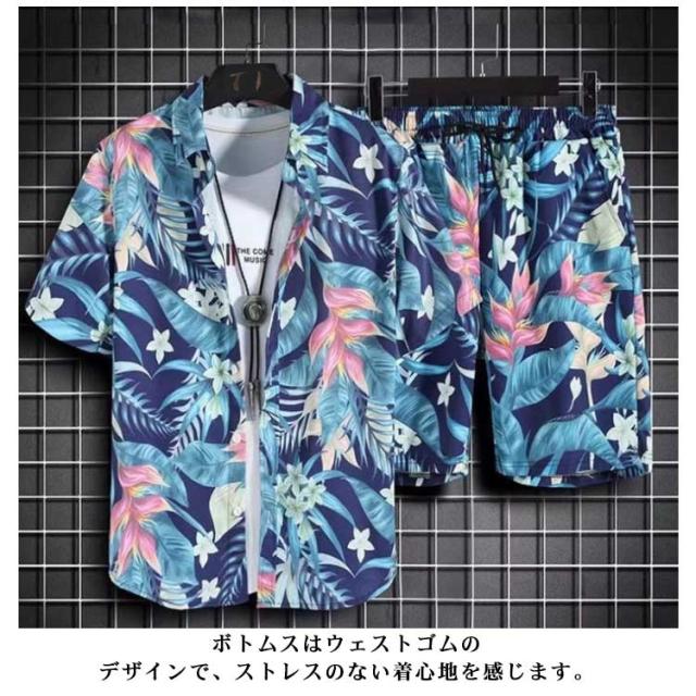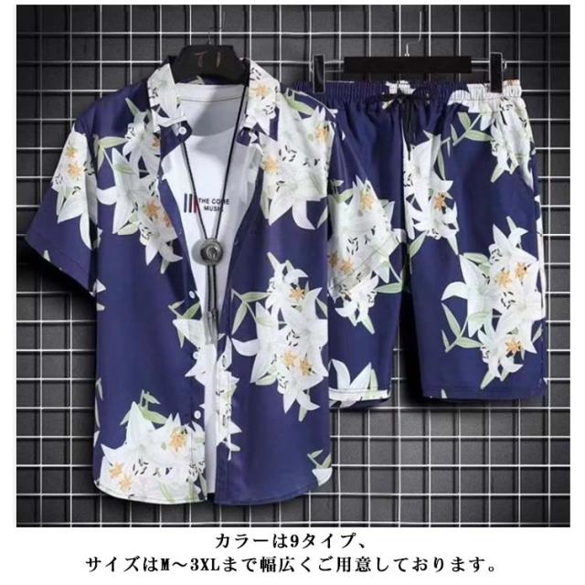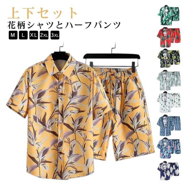 半袖シャツ アロハシャツ+短パン メンズ 大きいサイズ 夏服 ショートパンツ アロハシャツ+短パン 花柄 カジュアル 総柄 セットアップ ハワイ風 ビーチウェア リゾート 海辺 サーフ系 通気性 軽量