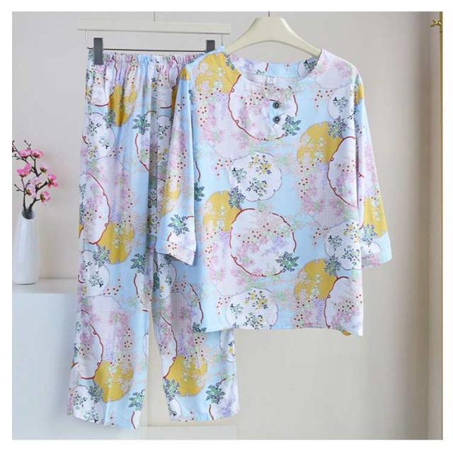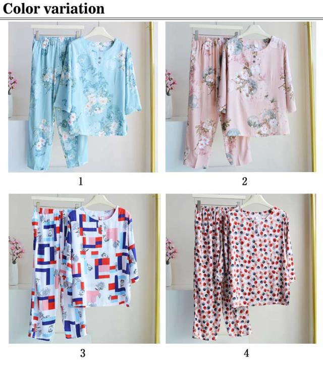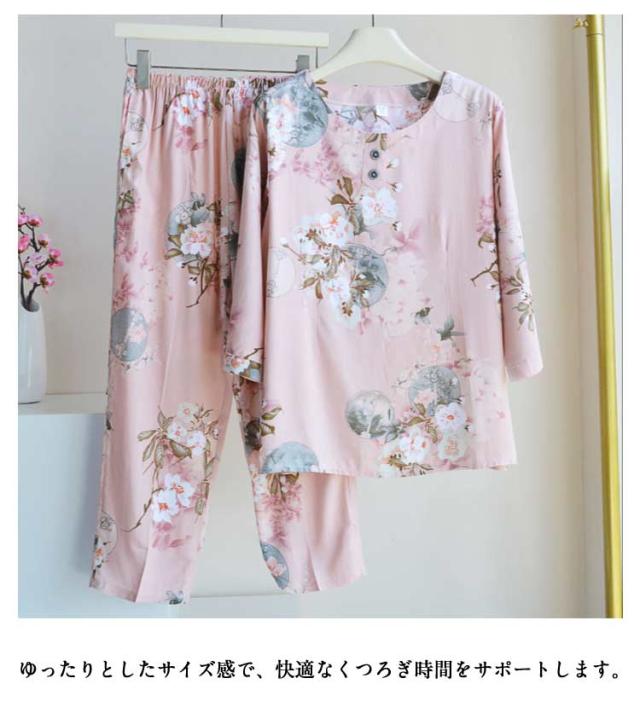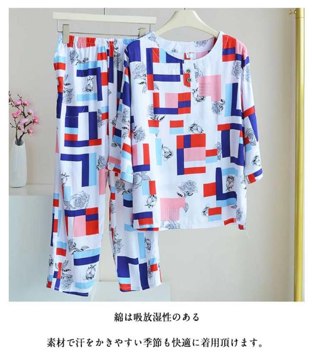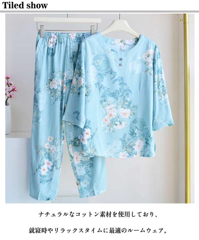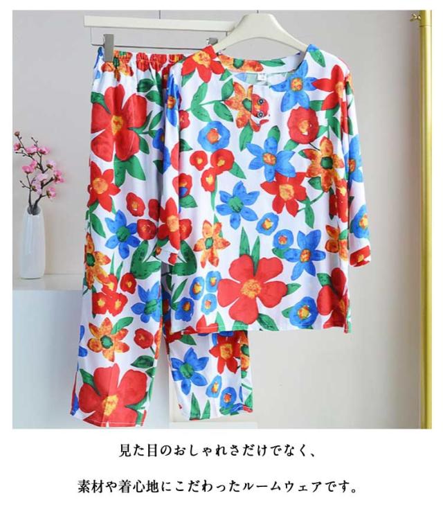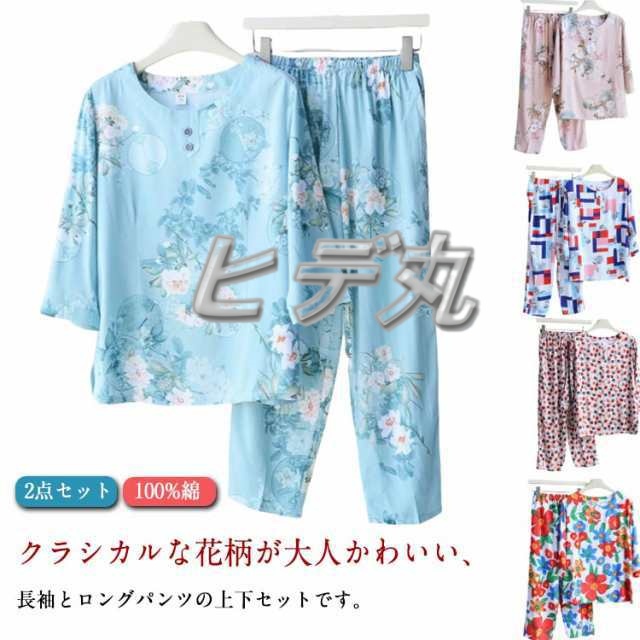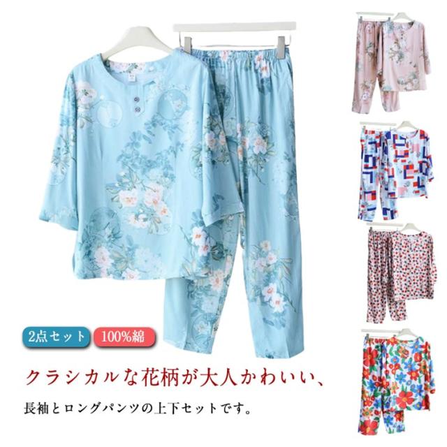 プルオーバー 祖母 セットアップ トップス ルームウェア 上下 七分袖 パジャマ 服 100%綿 丸首 春 ルームウェア シニア コットン 夏 秋 薄手 ロングパンツ 長袖 部屋着 2点セット 花柄 総柄 おしゃれ レディース おばあちゃん 敬老の日 プレゼント ギフト 孫