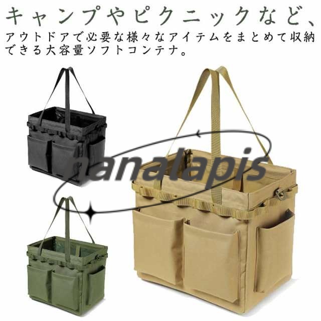 | ・キャンプやピクニックなど、アウトドアで必要な様々なアイテムをまとめて収納できる大容量ソフトコンテナ。 ・使わないときは、折りたたんでコンパクトに収納・持ち運び。 | |