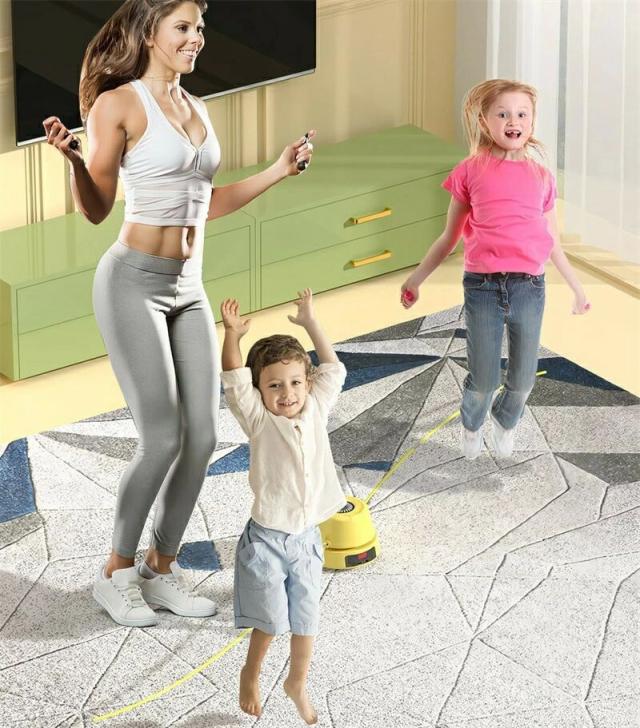 ハンズフリーで縄跳び!屋外屋内問わず、いつでもどこでも、1人でも家族でも使用可能。