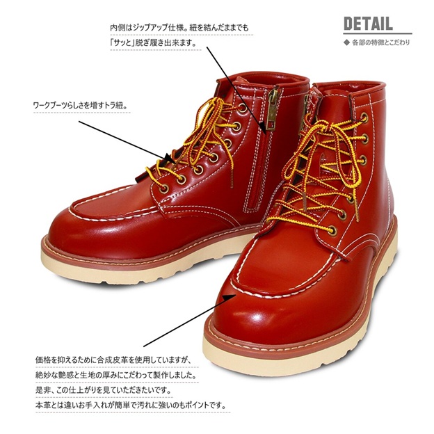・内側にファスナーが付いており編上げブーツも紐をほどかず脱着可能