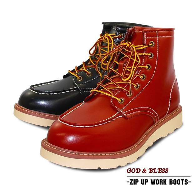 レディース ブーツ ベーシックモカシンワークブーツ アメカジ サイドジッパー クッションインソール 軽量 カジュアルブーツ おしゃれ 履きやすい 歩きやすい