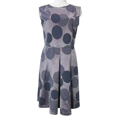 【中古】マックス&コー MAX&CO. ワンピース ひざ丈 ノースリーブ フレア ドット 水玉 光沢 M ブルー系 ■GY09 X