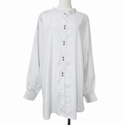 【中古】クラシカルエルフ 光沢 2wayダブルボタンシャツ ブラウス 長袖 バンドカラー チュニック丈 ライトグレー ■MMI