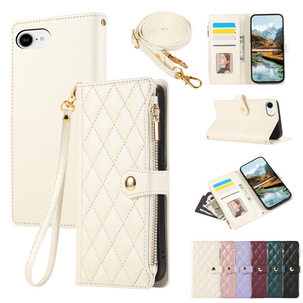 iPhone 17e 用 ケース 手帳型 iPhone 16e スマホケース ショルダー あいふおん17eケース ひし形柄 人気 女性 アイフォン17e ケース 肩掛け iphone16e カバー カード収納 ジップ付き財布 横置き機能