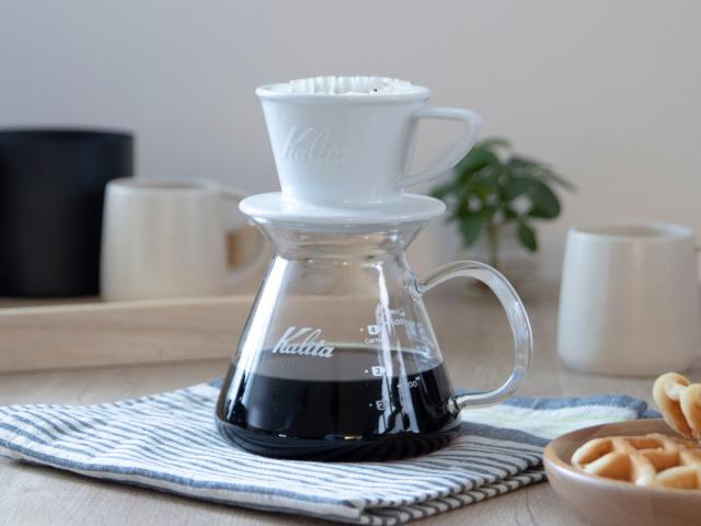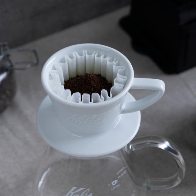 専用のウェーブフィルター(別売り)を使用すると、ドリッパーとの接触面が少なく、長時間フィルター内のかたよったところにお湯がたまらず、速やかにドリップされます。かたよってお湯を注いでも、底が平らなので粉に均一になじみやすいのが特徴です。「ウェーブ」シリーズは初心者からプロのバリスタまで…誰もが手軽に、ベストな味わいをお楽しみいただけるKalitaオリジナルのプロダクトシリーズです。