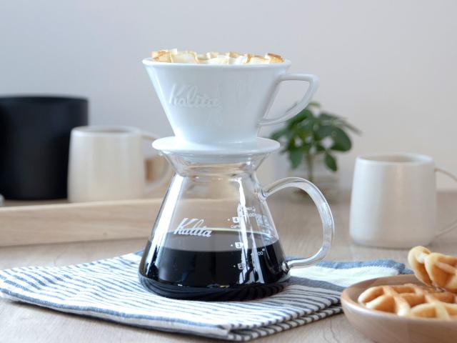 専用のウェーブフィルター(別売り)を使用すると、ドリッパーとの接触面が少なく、長時間フィルター内のかたよったところにお湯がたまらず、速やかにドリップされます。かたよってお湯を注いでも、底が平らなので粉に均一になじみやすいのが特徴です。「ウェーブ」シリーズは初心者からプロのバリスタまで…誰もが手軽に、ベストな味わいをお楽しみいただけるKalitaオリジナルのプロダクトシリーズです。