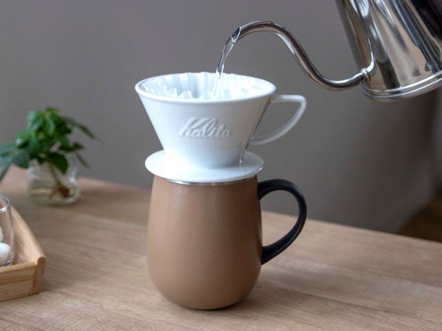 直接マグカップにのせてコーヒーをドリップすることが可能です。ちょっとだけ飲みたい時や、淹れたてを味わいたい時に最適です。