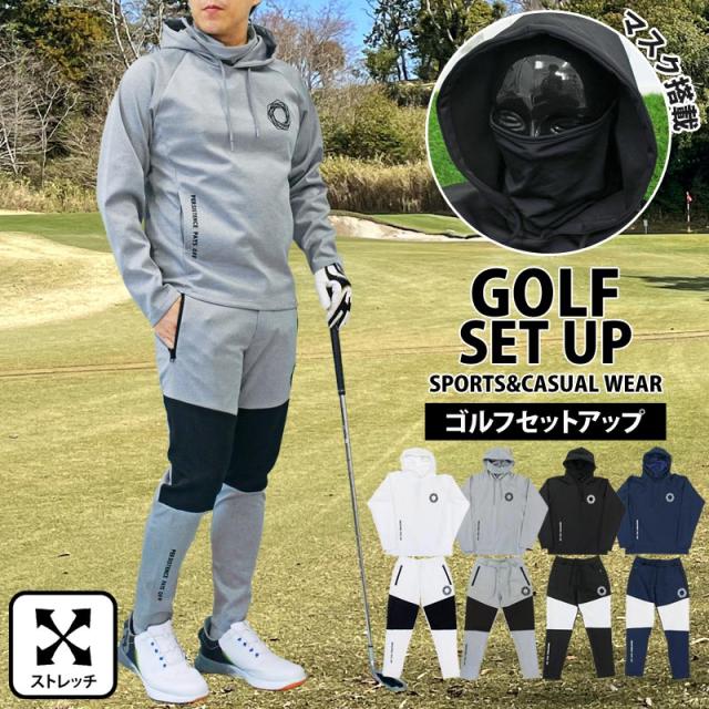 送料無料 ゴルフウェア メンズ 上下セットアップ GIORNO SEVEN ジョルノセブン マスク搭載プルパーカー トップス ゴルフパンツ 切替 ブランド おしゃれ 秋冬 春夏