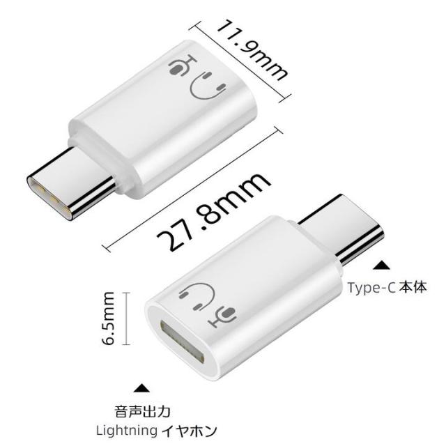 長さ:約2cm USB端子:USB Type C 両面接続対応 端子:Lightning メス(マイク、イヤフォン専用) 素材:プラスチック、PVC ※ 充電、データシンク対応しておりません。 |