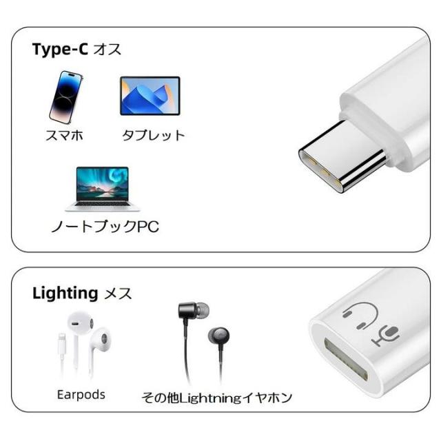 USB タイプC-Lightningメス Lightningイヤフォン マイク専用 音量コントロール 変換アダプタ Type Cを持つiPhone 15/15 Plus/15 Pro /15 Pro Max /iPhone 16/16 Pro/ 16 Pro Max/ 16 Plus/ iPad Pro 11インチ/12.9インチ/Air4/Air5/iPad 10対応 (グレー、ホワイト)2色選択