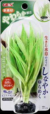 水流に自然にゆらめくシリコン製のやわらかプランツ 色や艶、葉脈まで忠実に再現。 水草水槽のワンポイントにも主役にも、明るい緑の水景を簡単につくることができます。 4972547034199