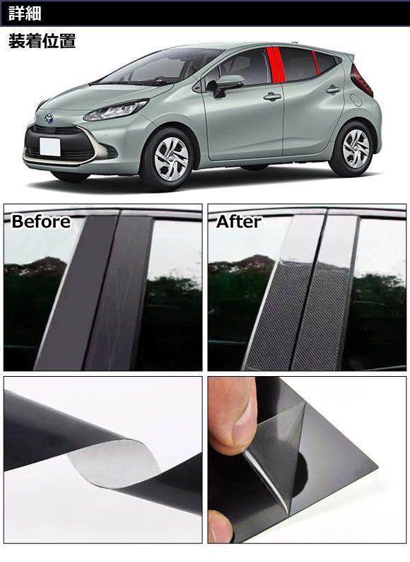 ピラーステッカー トヨタ アクア MX系 2021年07月〜 ブラックカーボン PC製 入数:1セット(6個) AP-DG347-BKC