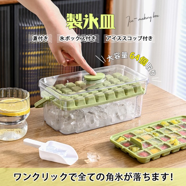 製氷皿 製氷器 シリコン 大容量 64個取り アイストレー 収納ボックス 一部おしゃれ 蓋付き 取り出し簡単 耐久性 家庭用宅飲み