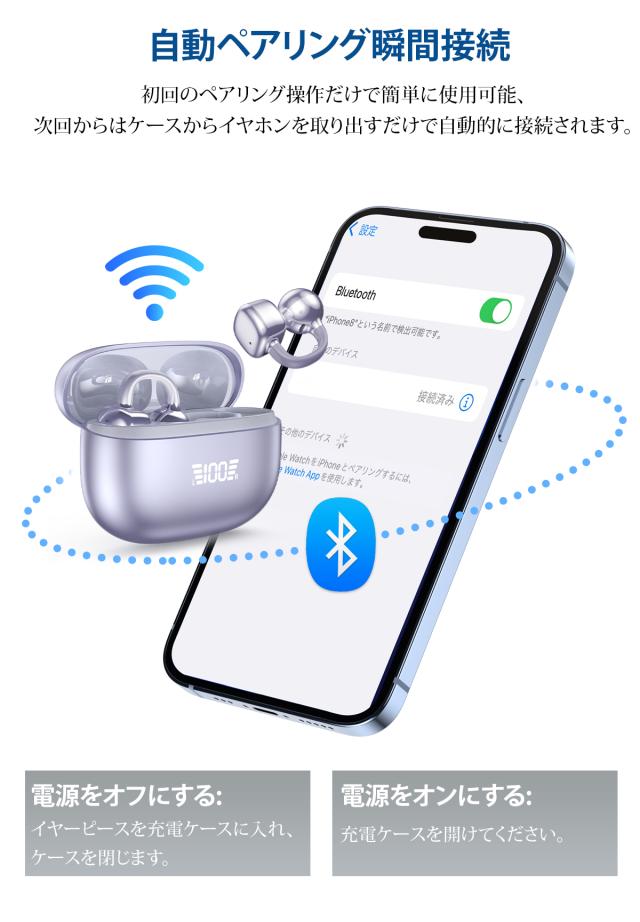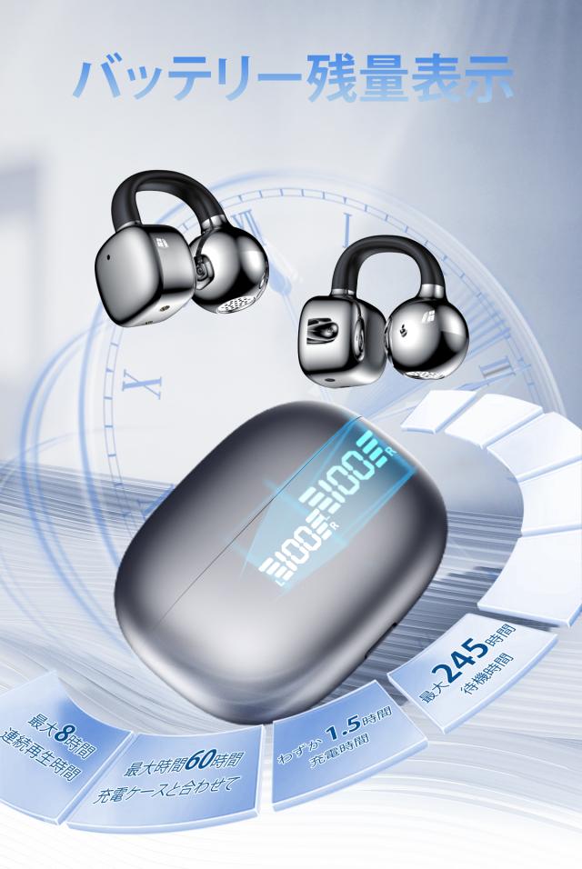 ワイヤレスイヤホン bluetooth6.0 イヤホン イヤーカフ 骨伝導イヤホン AAC高音質 業界TOP 60H連続再生 HiFi 生活防水 最新耳挟み式 自動ペアリング 日本語説明書 残量表示 Siri対応 タッチ操作 装着感ゼロ SHRATCH イヤホン